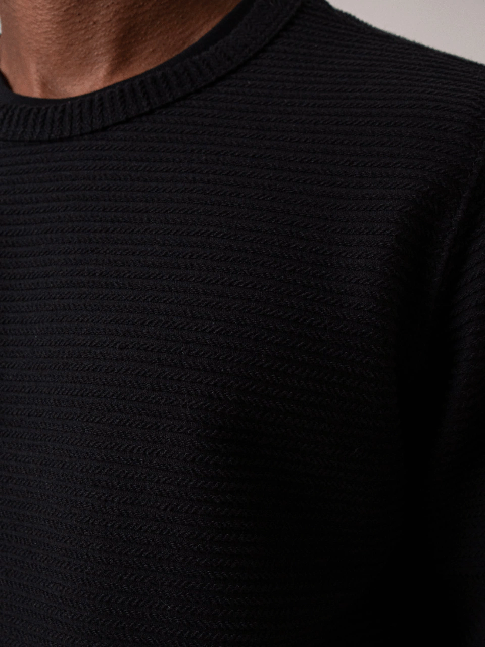 Esta é uma blusa de manga comprida cortada em malha com textura trançada tipo corda de alta qualidade.