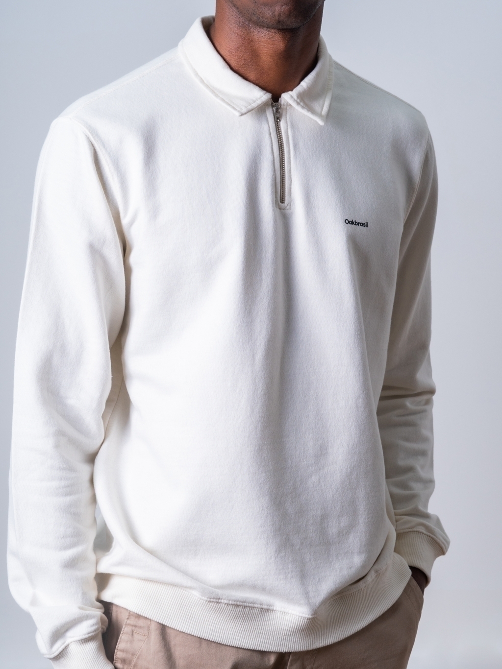 O moletom Bowey é um novo item essencial em nossa coleção. Ele é feito em moletinho, apresenta uma gola pólo em ziper de metal, gola de altura média, punhos e barras canelados e logo aplicada em ecotranfers no peito.